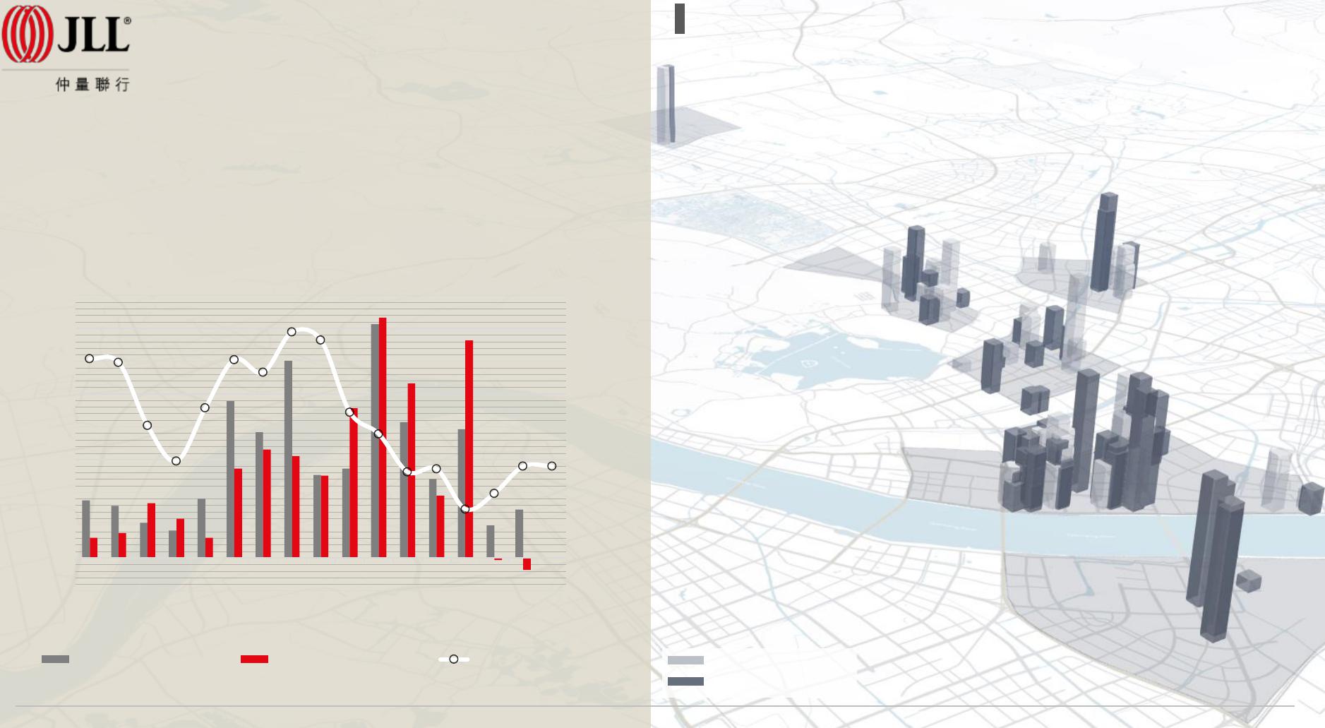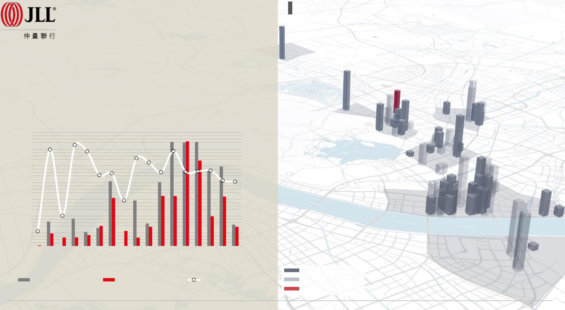 杭州甲级办公需求供应量及空置率趋势